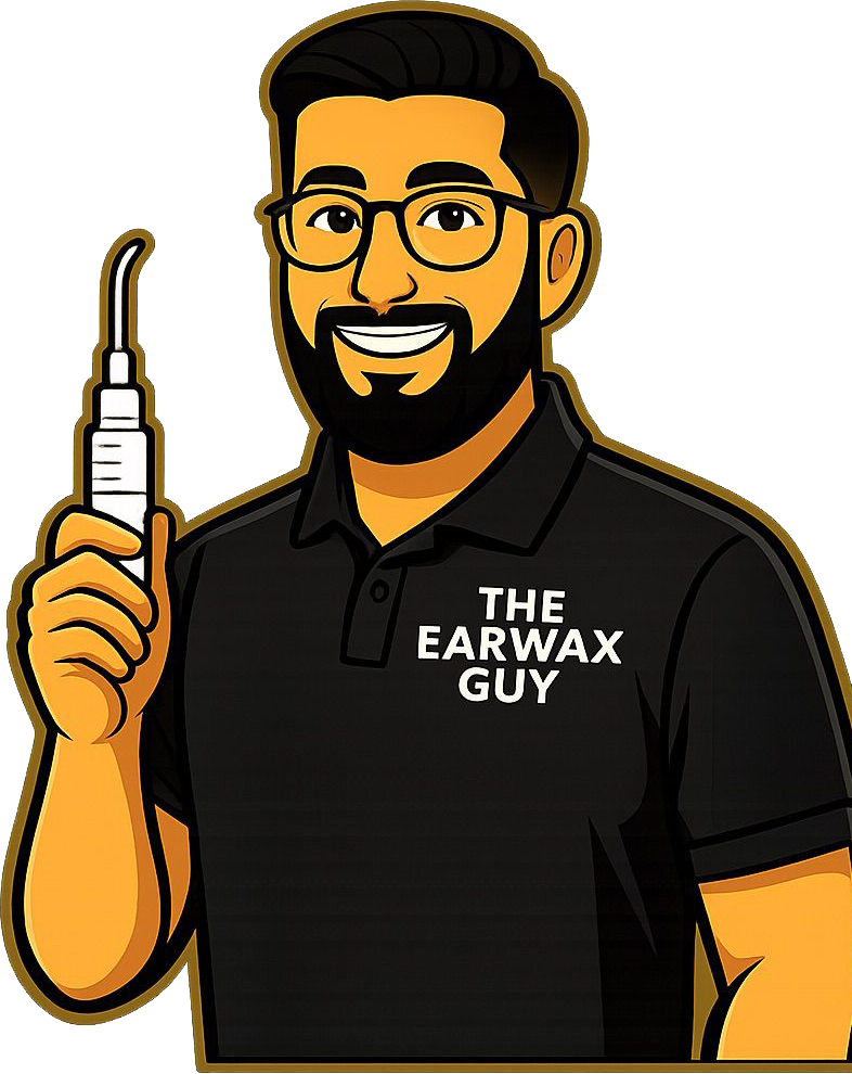 A quick ear health check using a medical-grade otoscope to see if wax is present.